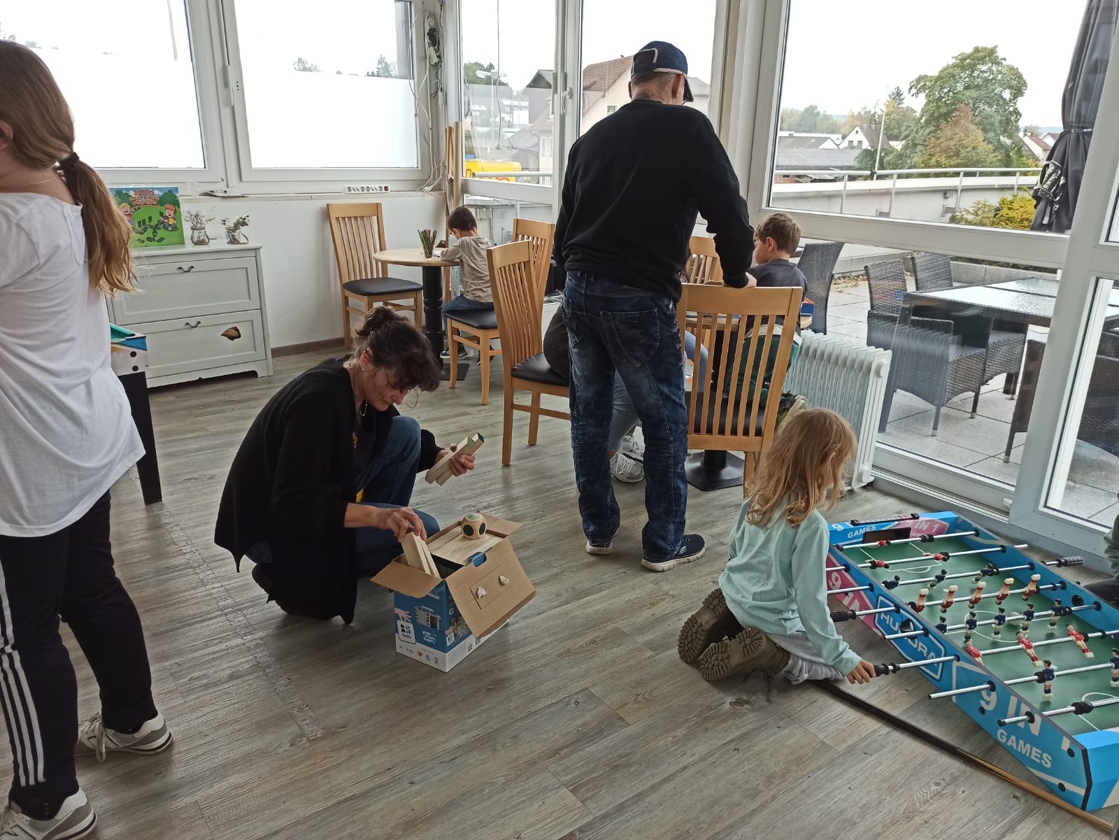 Die Helfenden des Cafés Brauchbar wirbelten herum und richteten alles, bevor die Gäste kamen. Auf dem Tresen stand das Büfett bereit, einen Raum weiter das Kinderschminken samt Tombola und gegenüber waren alle Informationen zur Arbeit der MenschenRäume aufgebaut. Es war also alles bereit, bevor die Gäste zum Tag der offenen Tür am vergangenen Sonntag kamen. Unter den rund zwanzig Helfenden waren selbstverständlich auch die beiden Vereinsvorsitzenden des Blochinger Wichtele. Ohne diesen Verein wäre die Quartiersarbeit des Projektes MenschenRäume nicht umsetzbar.
